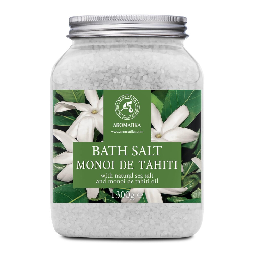 Bath Sea Salt Monoi de Tahiti 1300g - Bath Salts with Coconut Oil and Gardenia Flowers Extract - Bath Soak - Relaxing Bath - Good Sleep - Aromatherapy