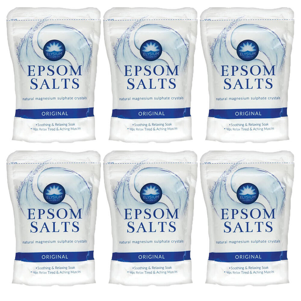 6x 450g Elysium Epsom Salts Original Detox Bath Soak Sleep Relax Musle Relief