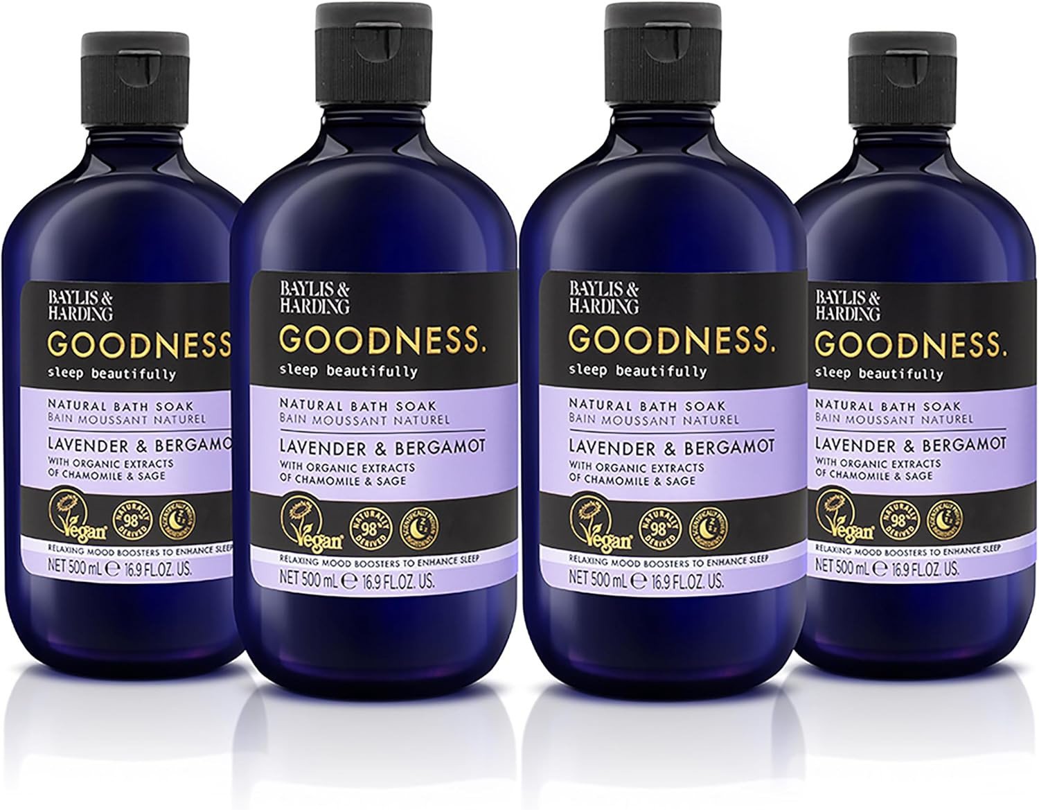 Baylis & Harding Goodness Sleep Lavender Bergamot Bath Soak, 500ml (Pack of 4) - Vegan Friendly
