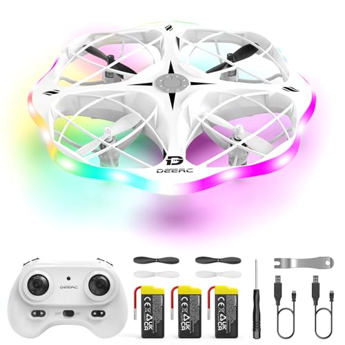 DEERC D13 Mini Drone for Kids with Obstacle Avoidance, 6 Lighting LED Modes, Easy Small UFO Toys with 3 Batteries Longer Flight Time, Throw to Go, 3D Flips, Birthday Gift for 6-12 Year Old Boys Girls