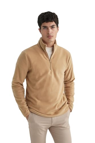 DeFacto Men's Pullover - Troyer with Half Zip and Zip for Men - Stylish Cardigans and Sweaters, Vizon, M