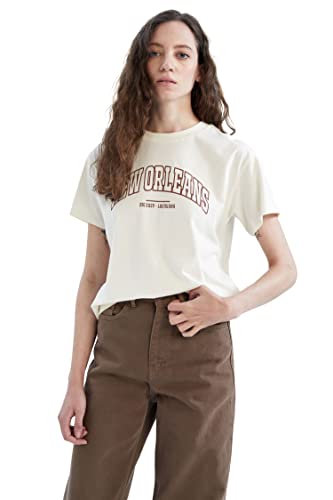 DeFacto Women's U3769AZ T-Shirt, Ecru, M