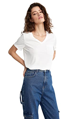 DeFacto Women's Z4304AZ T-Shirt, White, S