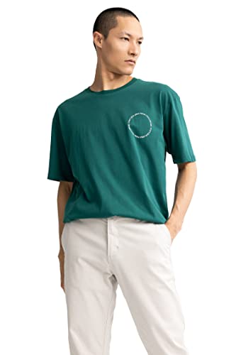 DeFacto Men's Z5998AZ T-Shirt, D.Green, XL