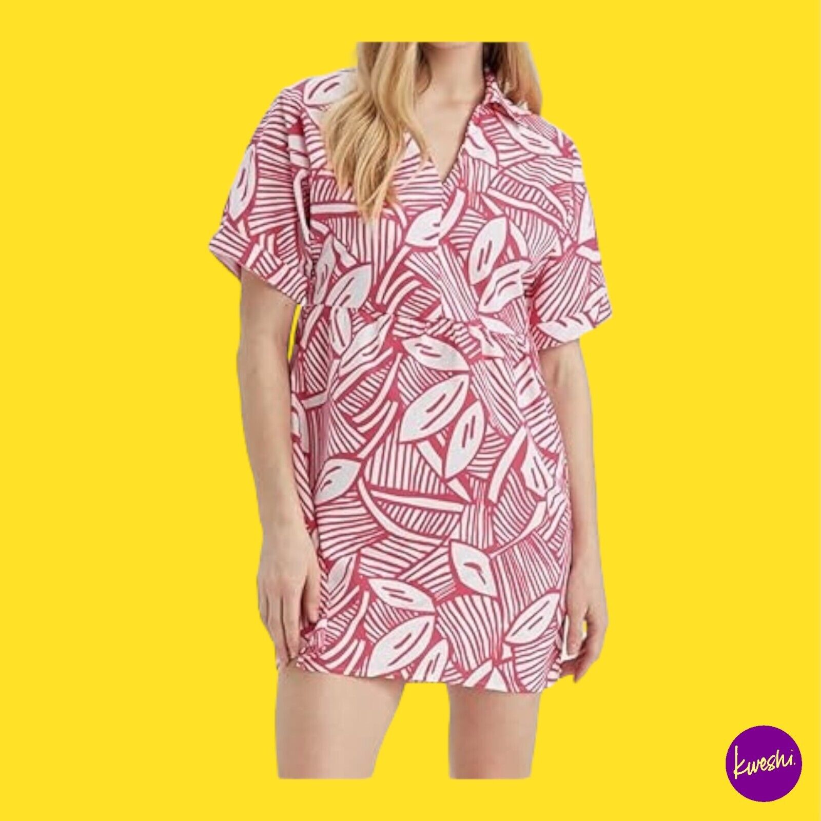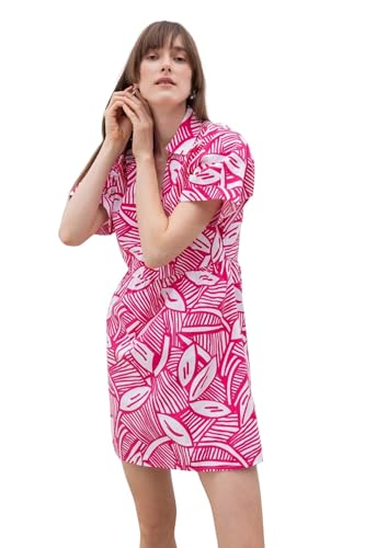 DEFACTO Women's Printed Mini Dress, Collared w/ Roll Sleeves, Pink, UK 6 (EU 34)