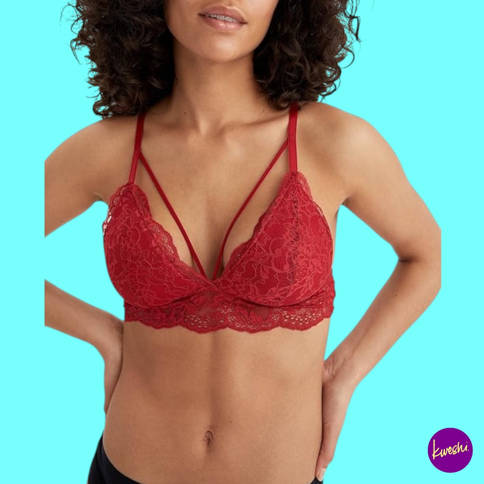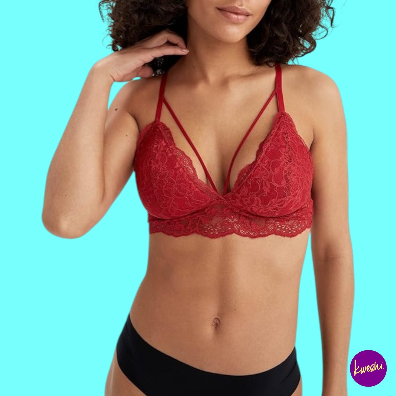 DEFACTO Women’s Lace Triangle Bralette, Wireless, Fixed Straps Red, UK S | EU 36