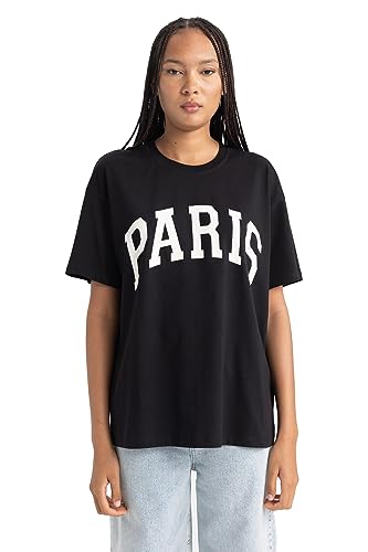 DeFacto Women's B0661ax T-Shirt, Black, XXL