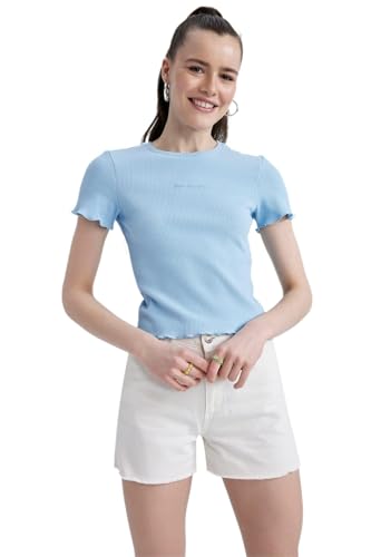 DeFacto Women's N7312AZ T-Shirt, Blue, L