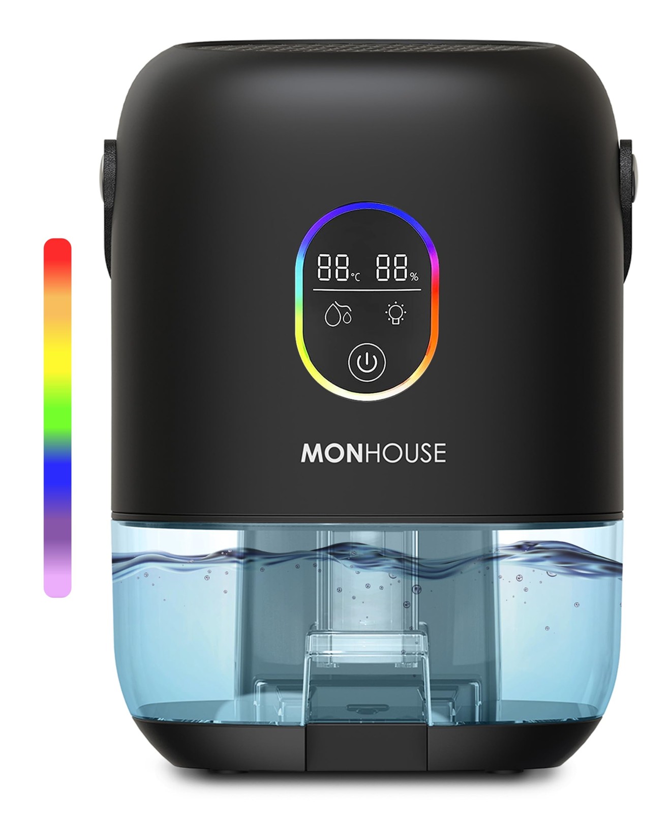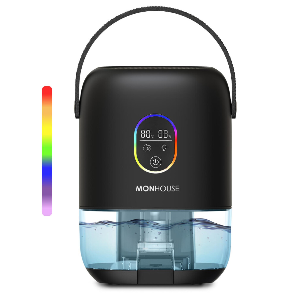 (Black, 450ml / Day) MONHOUSE Dehumidifer - 1L - Electric Moisture Absorber - Touch Screen, Auto Shut Off, Humidity & Temperature Indicator