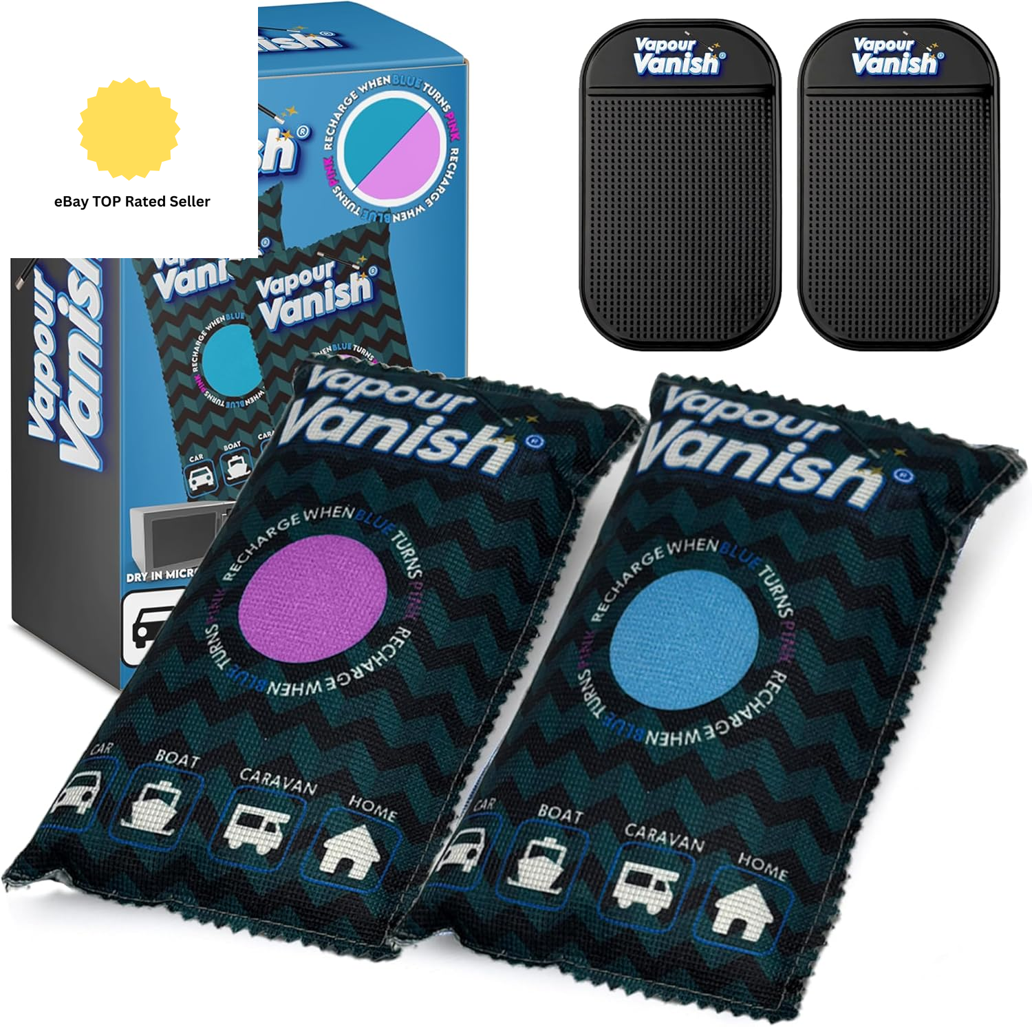 VapourVanish Reusable Dehumidifier Bags - Car Dehumidifier Moisture Absorber With Dashboard Anti-Slip Mats, Rechargeable Silica Gel Interior Dehumidi