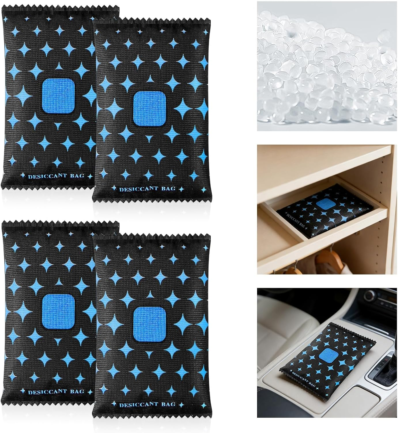 Reusable silica gel dehumidifier bags for car, home, bathroom, bedroom, RV â moisture absorber with color-changing indicator, fast drying, safe odor