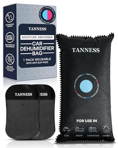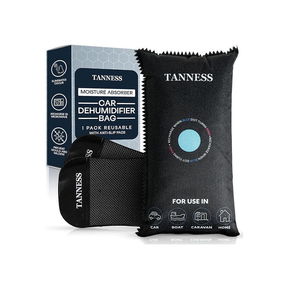 Tanness 1 Pack x 1kg Car Dehumidifier Bags with Anti-Slip Pads - Essential Accessories, Moisture Absorber, Reusable, Recharges in Microwave - Multipurpose for Home, All Spaces & Vehicles