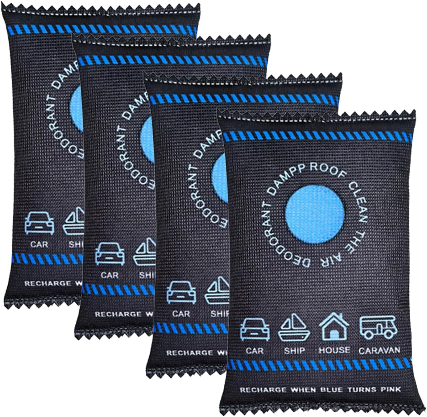 4 Pack 200g Car Dehumidifier Bags, Car Moisture Absorber, Reusable Humidity Bag
