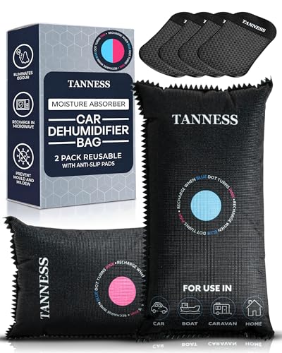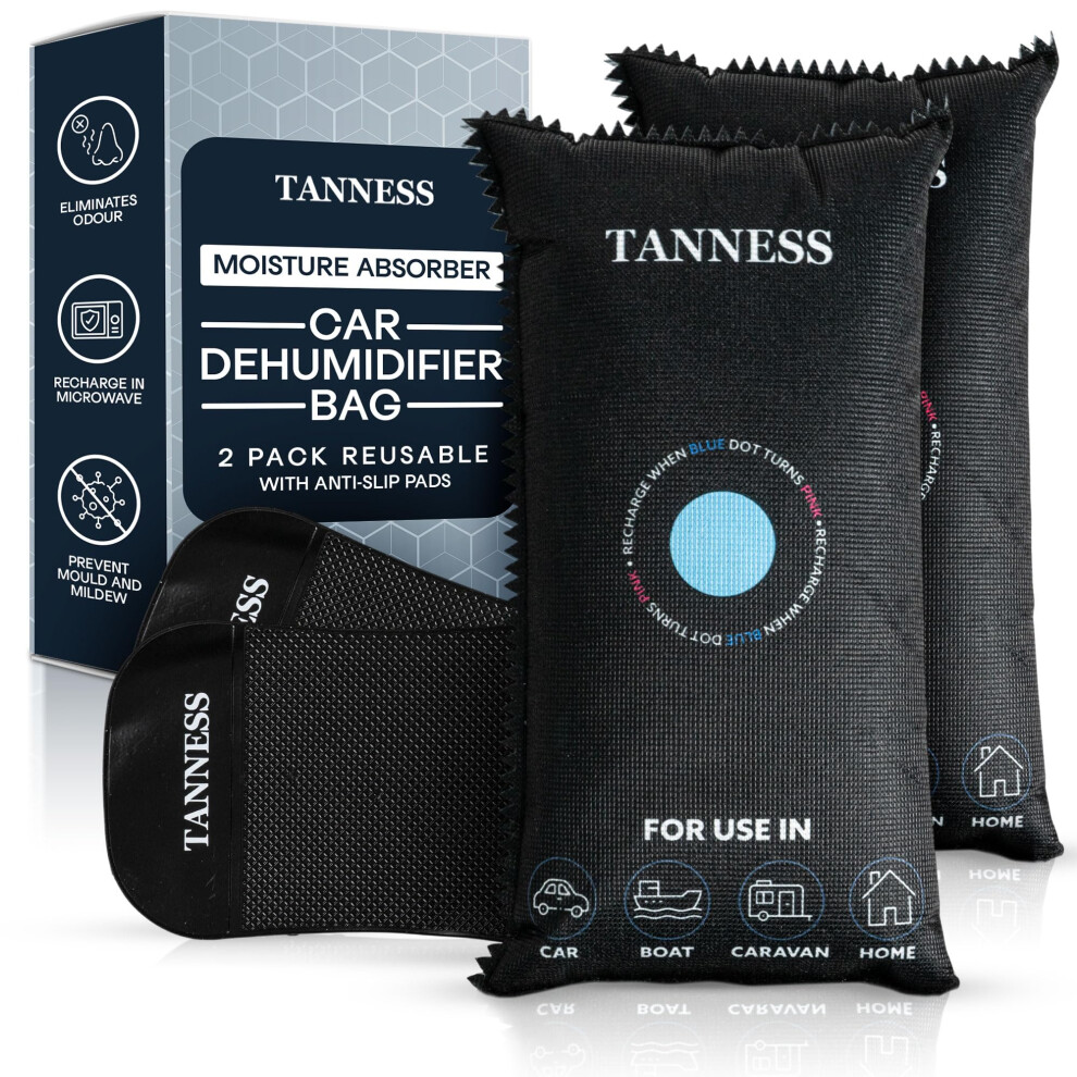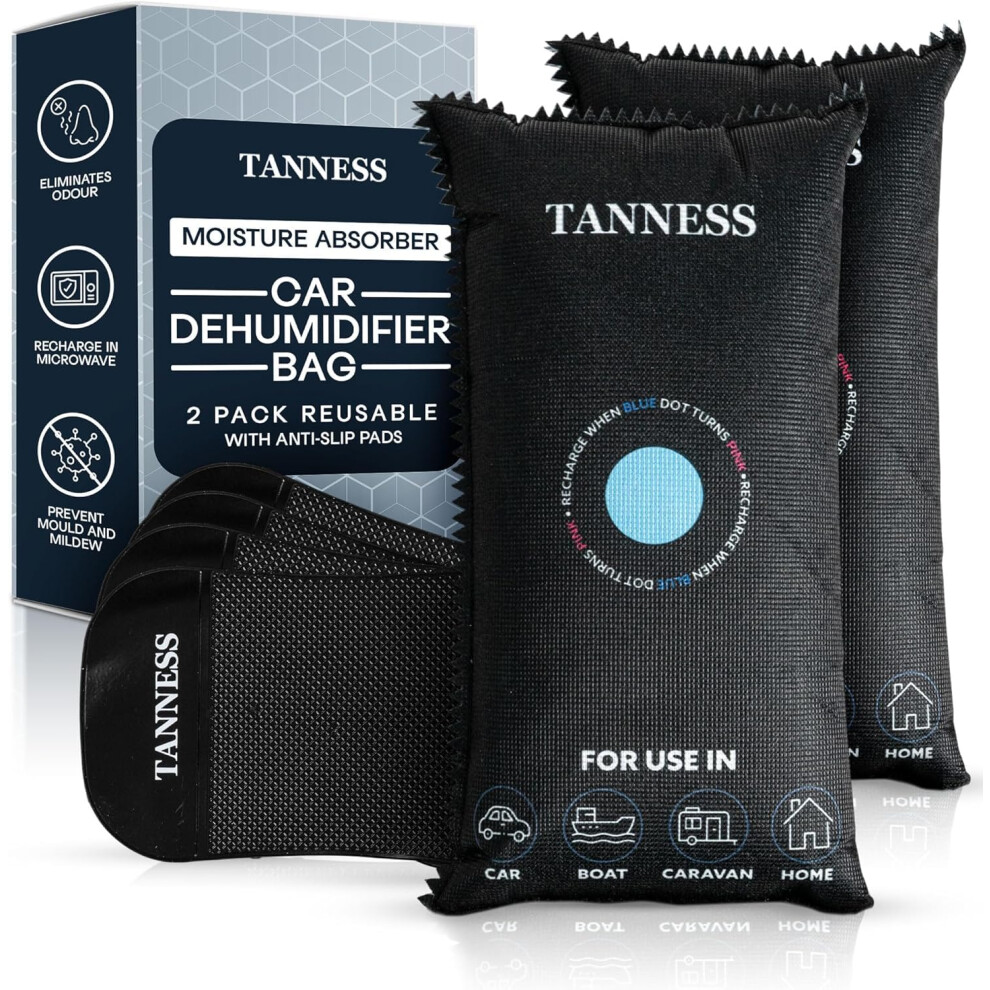 Tanness 2 Pack x 1kg Car Dehumidifier Bags with Anti-Slip Pads - Essential Accessories, Moisture Absorber, Reusable, Recharges in Microwave - Multipurpose for Home, All Spaces & Vehicles
