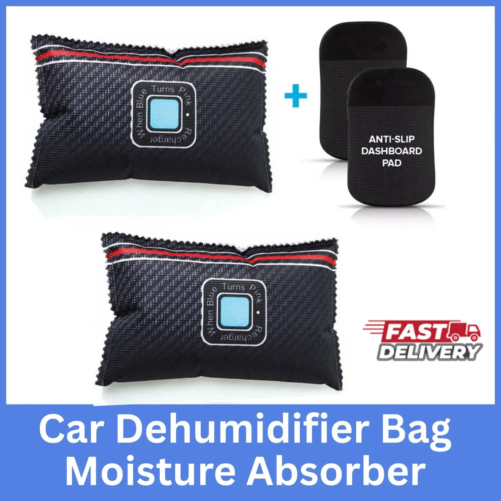 2 x1kg Reusable Car Dehumidifier Bags, Moisture Absorber for Home, Anti-slip Pad