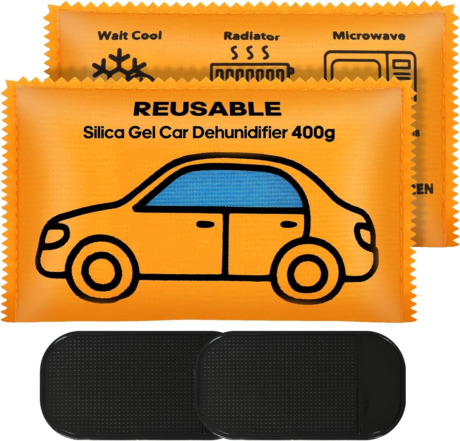 2 Pcs 500g Silica Gel Car Dehumidifier Bags â Rechargeable, Reusable Moisture Absorbers for Car, Closet & Gym Bag