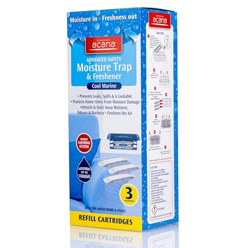 Acana Advanced Safety Moisture Trap & Freshener System Pack of 3 Refills - Dehumidifier for Damp & Mould | Moisture Absorber for your Home, Caravan, Kitchen, Bathroom, Bedroom, Garage, Office