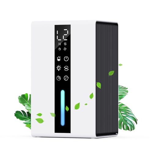 Dehumidifiers for Home,2.7L Dehumidifier for Bedroom Quiet & Touch Control Dehumidifier for Bathroom,10-Hour Timer,Auto Shut-Off & 7 Colorful LED Dehumidifiers for Wardrobe,Closet, RV(550ML/24H)