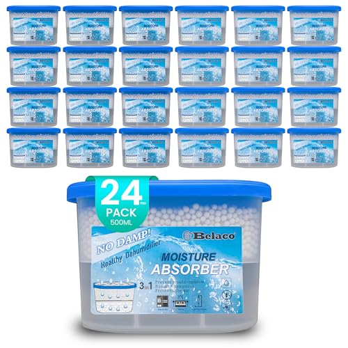 Belaco Dehumidifier Pack Prevent Mould & Mildew, Eliminating Musty Odor, Remove Dampness, Absorb Excess Mositure in Home, Kitchen, Bathroom, Bedroom, Wardrobe, Caravan, Office, Basement (24)