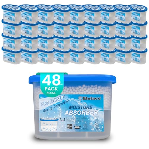 Belaco Dehumidifier Pack Prevent Mould & Mildew, Eliminating Musty Odor, Remove Dampness, Absorb Excess Mositure in Home, Kitchen, Bathroom, Bedroom, Wardrobe, Caravan, Office, Basement (48)