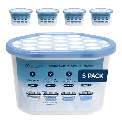 CUQOO Disposable Dehumidifier for Home 500ml, Pack of 5 Moisture Absorber Dehumidifiers for Damp, Mould, Kitchen, Wardrobe, Bedroom, Caravan, Office, Garage, Bathroom - Mini Condensation Absorbers