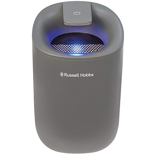 Russell Hobbs RHDH1061G 300ml/day, Grey Dehumidifier with Auto Defrost for Home, Kitchen, Basement, Garage, Caravan, Bathroom, Lightweight, 15m2 Room Size, LED Lighting