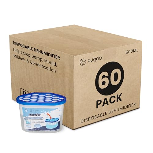 CUQOO Disposable Dehumidifier - 500ml Pack of 60, Damp & Moisture Absorber, Dehumidifiers for Damp, Mould, Kitchen, Wardrobe, Bedroom, Caravan, Office, Garage, Bathroom Condensation Remover