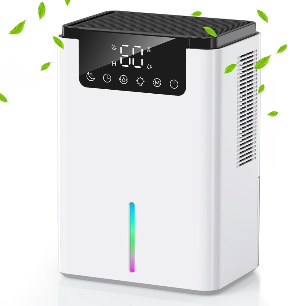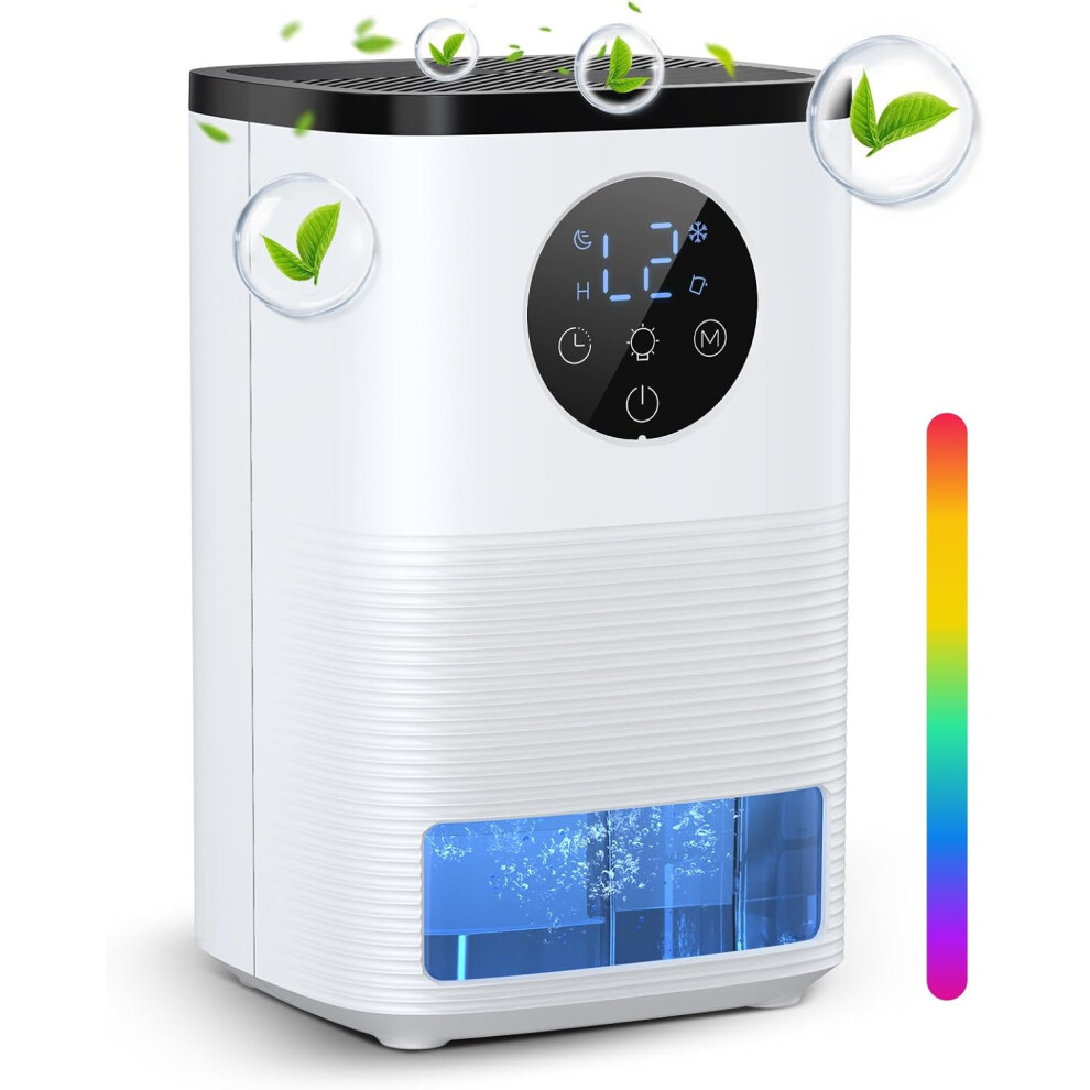 Home Dehumidifier Dehumidifier for drying clothes, 2 modes auto shut-off and 24-hour timer touch control, 7 color lights, silent dehumidifier