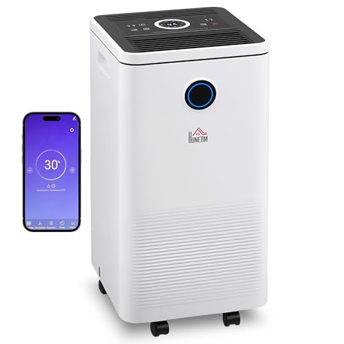 HOMCOM 10L/Day Dehumidifier with WiFi Smart App Control, 2.5L Water Tank, Digital Display, Sleep Mode, 24H Timer, Laundry Clothes Drying, for Home and Large Room Basement