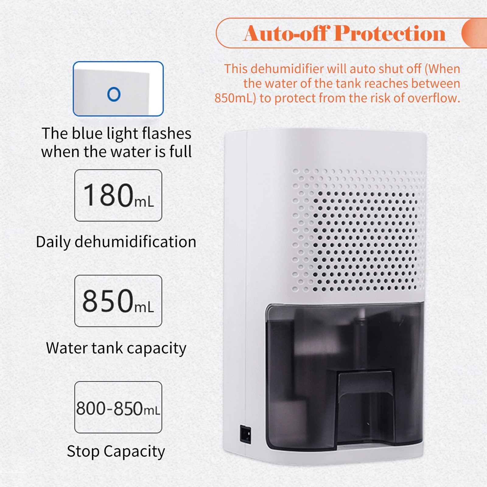 Small Dehumidifier 850ml Energy Saving Auto Shut Off Household Quiet