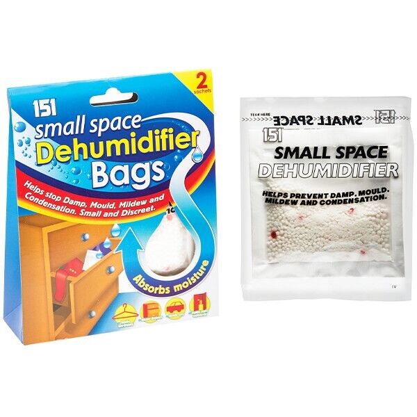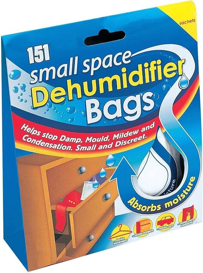 151 Small Space Dehumidifier Bags Sachet Pack Mould Mildew Damp Wardrobe Drawers