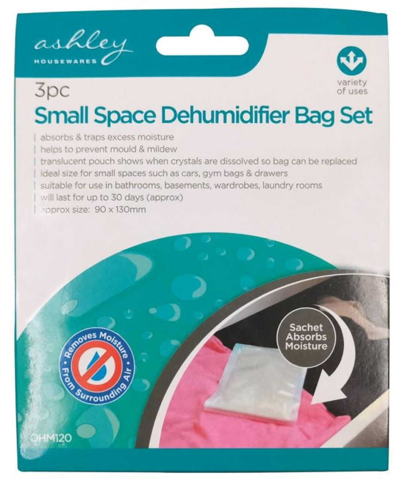 3PK Small Space Dehumidifier Sachet Set Gym Bag Drawers 30 Day Moisture Mould