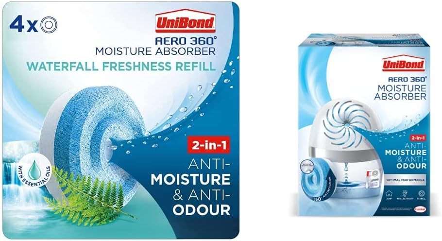 Unibond UniBond AERO 360? Moisture Absorber Waterfall Freshness Refill Tab, Aromatherapy, Ultra-Absorbent and Odour-Neutralising, for Dehumidifier,
