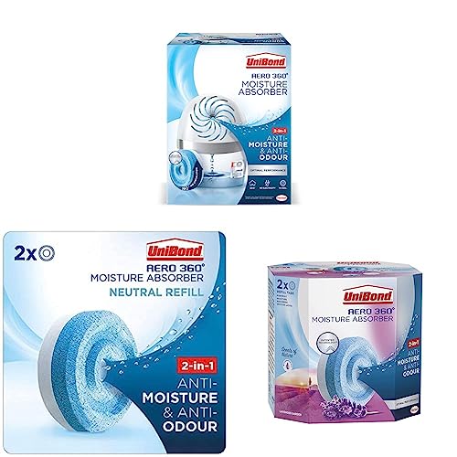 UniBond AERO 360° Moisture Absorber - Ultra-Absorbent Dehumidifier With Neutral and Lavender Garden Refill Tabs