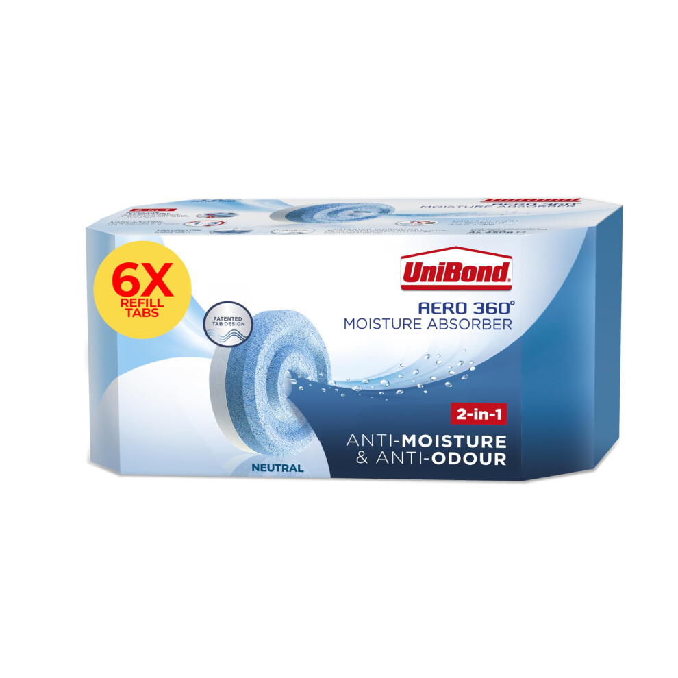 Unibond AERO 360° Moisture Absorber Neutral Refill Tab, Ultra-Absorbent and Odour-neutralising, (6 x 450g) AERO 360º Moisture Absorber, Ultra-Absorbent Dehumidifier 1 Device