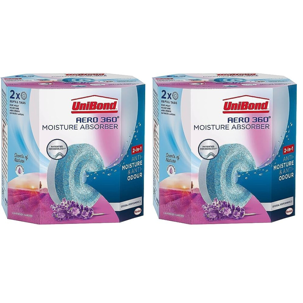 UniBond AERO 360° Dehumidifier Moisture Odour Condensation 2x Refills - Lavender