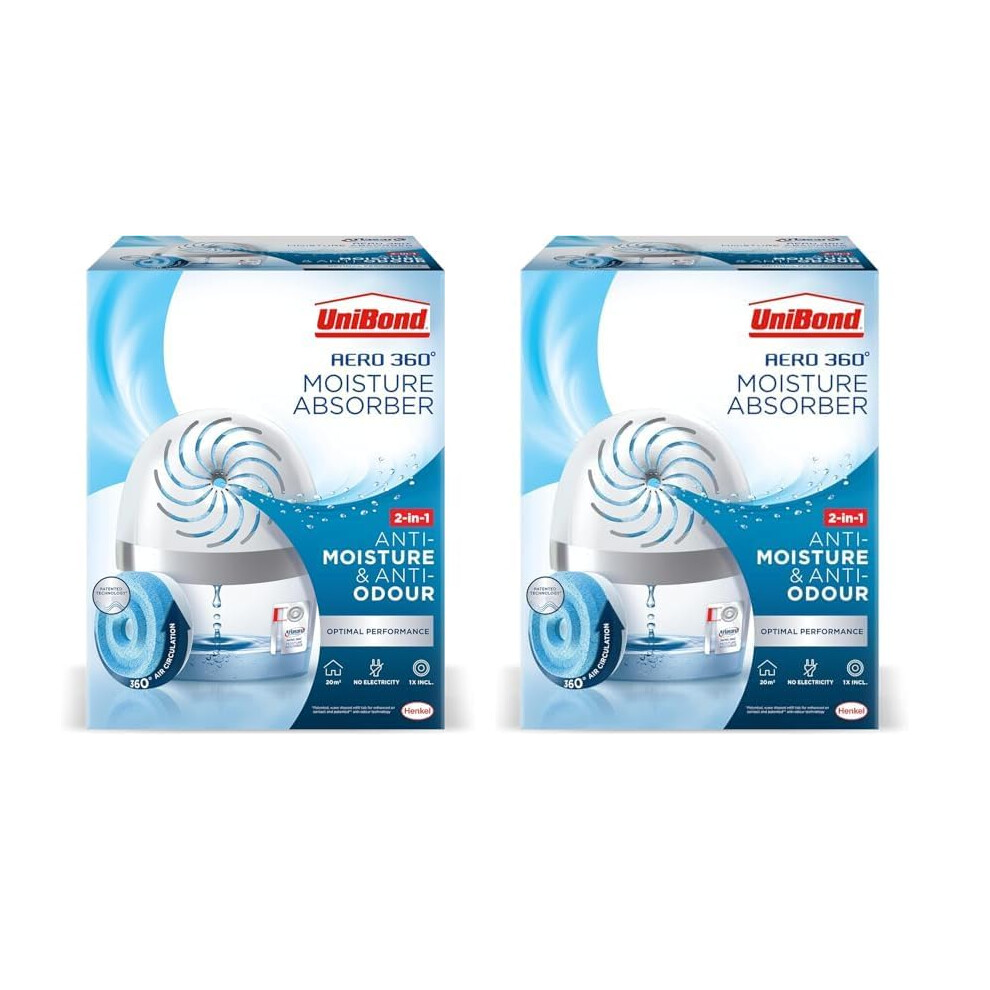 2 Unibond AERO 360 Anti Moisture & Anti Odour Dehumidifier System Device +Refill