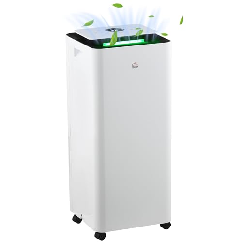 HOMCOM 16L/Day Dehumidifier with Air Purifier and HEPA Filter, UVC, Ioniser, 5.5L Water Tank, 24H Timer, for Home Damp, Condensation, Mould and Laundry Drying, White
