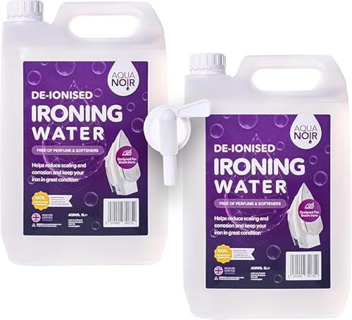 AQUANOIR Deionised Demineralised Ironing Water 10L | Pure Ironing Water for Steam Iron & Perfume| Pure Deionised Water for Iron, to prevent impurities| Made in UK (10 Liters) | 1 Tap per Pack