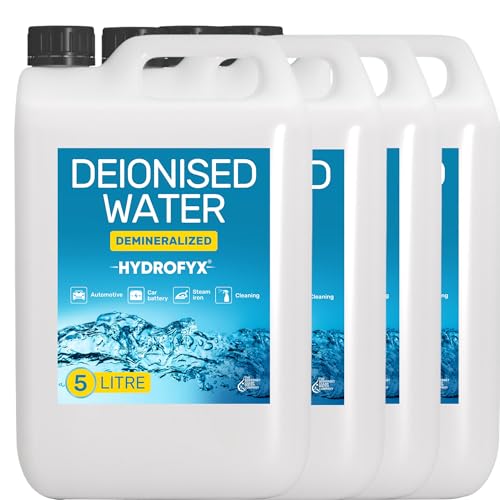 HYDROFYX 20L (4 x 5L) Deionised Water – Demineralised, Low Conductivity – Fast Dispatch – For Irons, Steam Cleaners, Car Batteries, Radiators & Cleaning