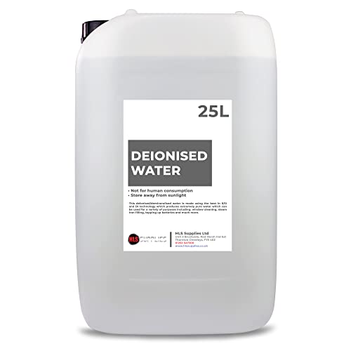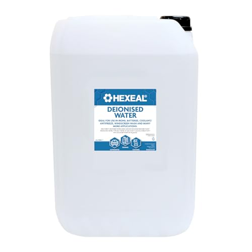 Hexeal Deionised Water 25L – 25L of Deionised Water for Steam Irons, Car Batteries, Windscreen Fluid & Antifreeze – Demineralised Water, Reduces Limescale Deposits & Water Stains – For Lab Use