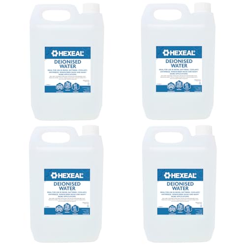 Hexeal Deionised Water 20L – 4 x 5L of Deionised Water for Steam Irons, Car Batteries, Windscreen Fluid & Antifreeze – Demineralised Water, Reduces Limescale Deposits & Water Stains – For Lab Use