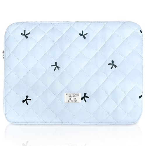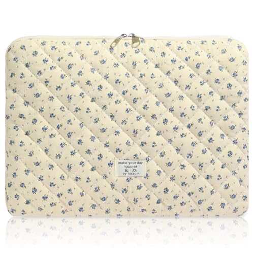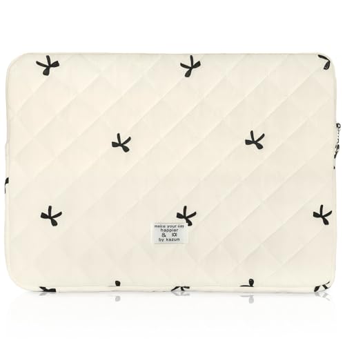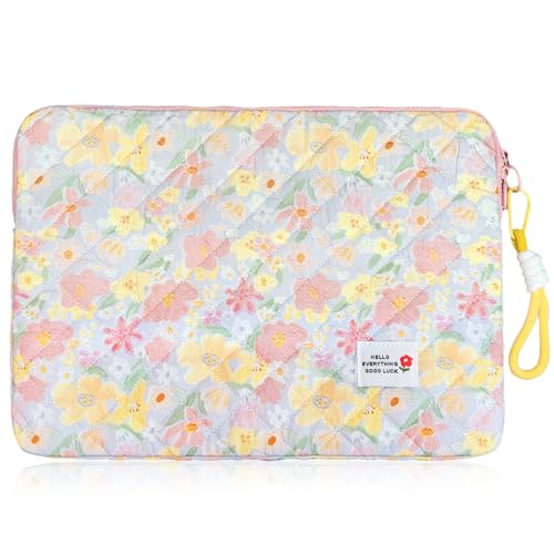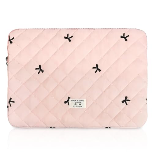 Flintronic 14In Laptop Sleeve, Cute Floral Quilted Laptop Case, Bow Quilted Lap-top Carrying Case, Portable Puffer Padded Lap-top Sleeve, Compatible with MacBook, Asus, Dell, HUAWEI