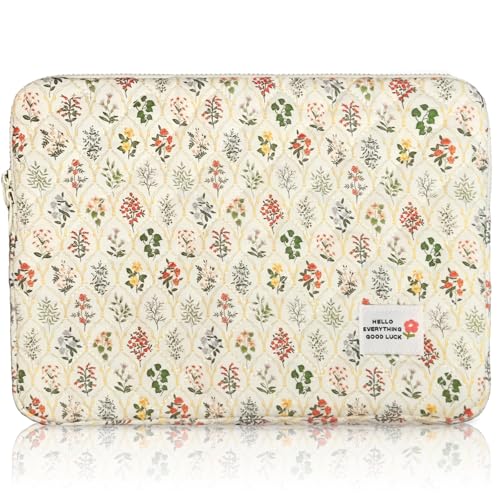 Flintronic 15.6In Laptop Sleeve, Cute Floral Quilted Laptop Case, Bow Quilted Lap-top Carrying Case, Portable Puffer Padded Lap-top Sleeve, Compatible with MacBook, Asus, Dell, HUAWEI