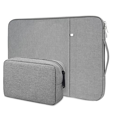 Flintronic Laptop Sleeve for 15.6 Inch, Portable Water Resistant Mens Lap-top Bag with Pockets and Compartments, Compatible with MacBook, Asus, Dell, HUAWEI 15.6 Inch Laptop (Light Gray)