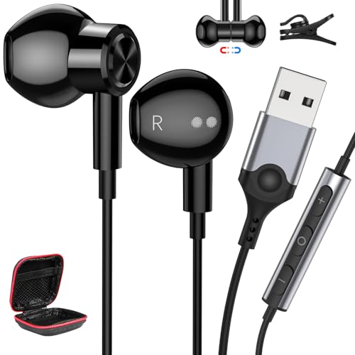 AIAUXAI USB Earbuds with Microphone for PC,USB A Headphones for Computer,7.5Ft laptop Headset Wired Magnetic Noise Cancelling Earphones for HP Dell Laptops for Surface Switch Business Office,Black