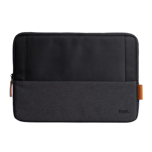 Trust Lisboa Laptop Sleeve 13.3 inch, Made from Recycled Plastic, Durable Slim Padded Laptop Case Cover for Men, Women, College, MacBook, HP, Dell, Asus, Lenovo, Travel, Work, Business - Black