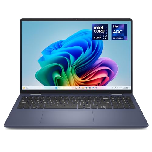 Dell 16 Plus 2-in-1 Laptop DB06250 Copilot+ PC 16" 2.5K Mini-LED Touch 90Hz HDR 600, Intel Core Ultra 7 256V, Intel Arc, 16GB RAM DDR5, 1TB SSD, Windows 11 Home, UK QWERTY Backlit Keyboard - Blue