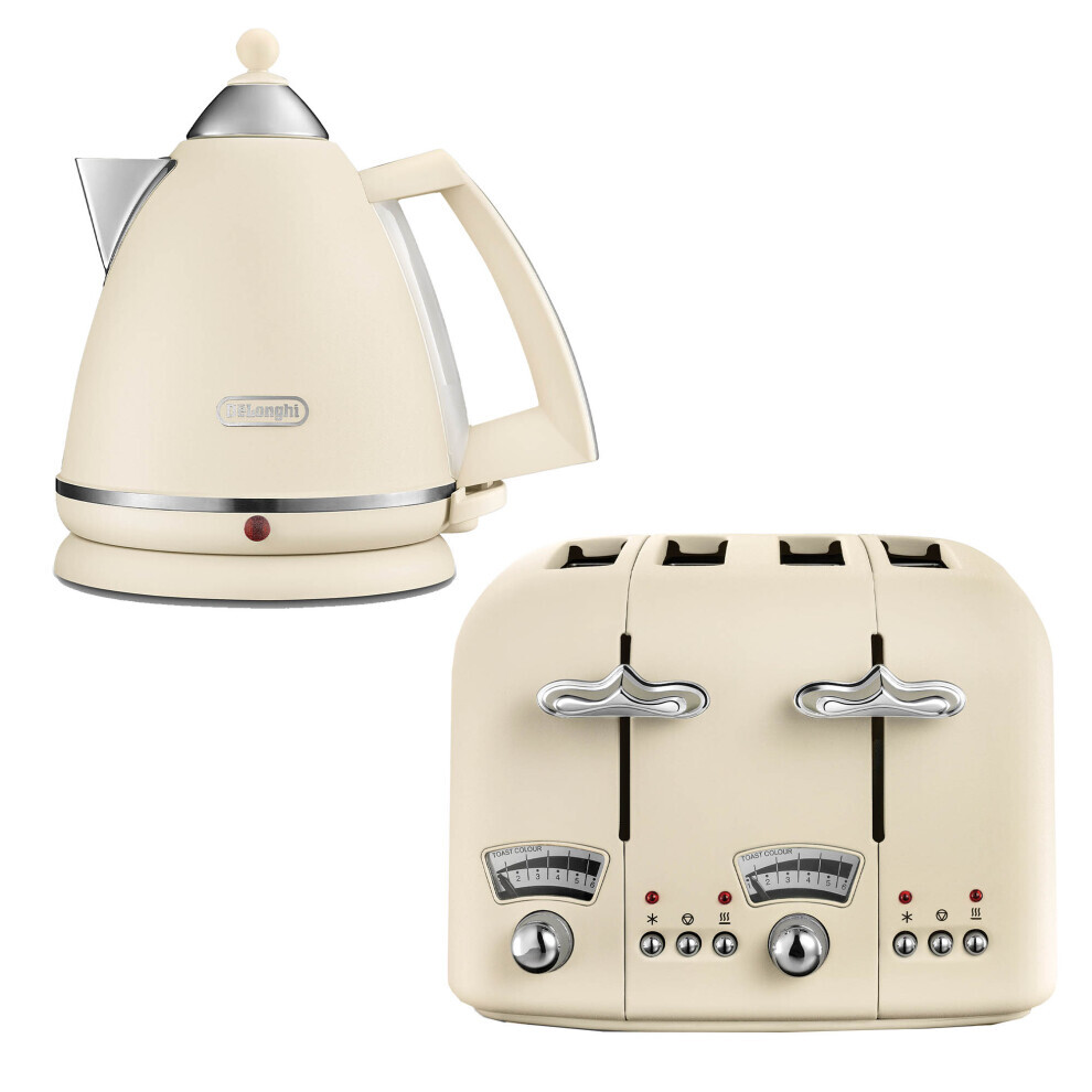 Delonghi Argento 1.7L Kettle & 4 Slice Toaster Set, Beige