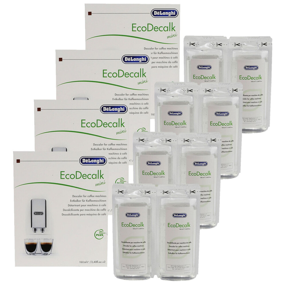 Delonghi EcoDecalk Mini Coffee Machine Maker Cleaner Descaler 8 x 100ml Sachets
